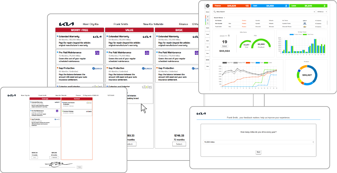 In minutes, you can transform your F&I presentations into a personalized, professional experience. Easily create branded print or digital menus with your own logo, colors, and custom surveys.